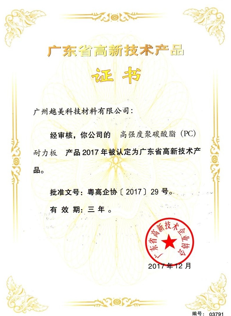廣州越美科技材料有限公司,始創(chuàng)于1991年,至今有30年歷史,公司根據(jù)產(chǎn)業(yè)創(chuàng)新變革升級曾用名注冊6個,現(xiàn)公司名為第六代,是目前國內(nèi)專業(yè)生產(chǎn)聚碳酸酯PC陽光板,PC耐力板,具有獨(dú)立知識產(chǎn)權(quán)、具備進(jìn)出口資格和一般納稅人資格的產(chǎn)、供、銷一體化的中型民營企業(yè)。